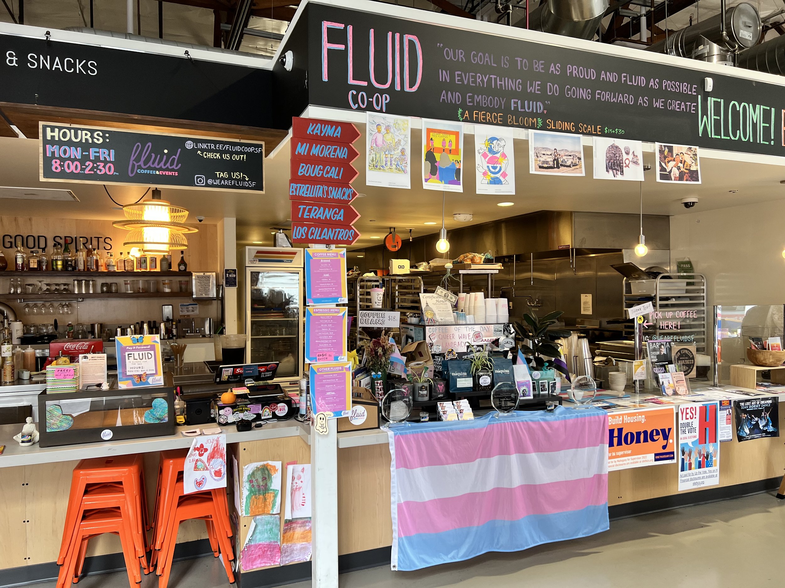 “Fluid is a café and event space in the Tenderloin centering the Trans, Non-Binary and Gender Nonconforming (TGNC) and queer communities. A business that is entirely owned and led by trans folks, we offer a space for people to gather, host events, and share a cup of coffee together.”